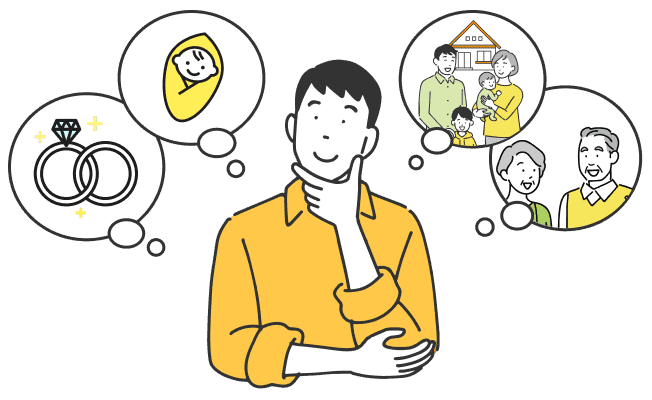 結婚などのライフイベントが予想される方は、 必要な保障は変わります。定期型なら、一定の期間に手厚い保障を、必要な分だけ備えられます。終身型よりも加入時の保険料が割安です。