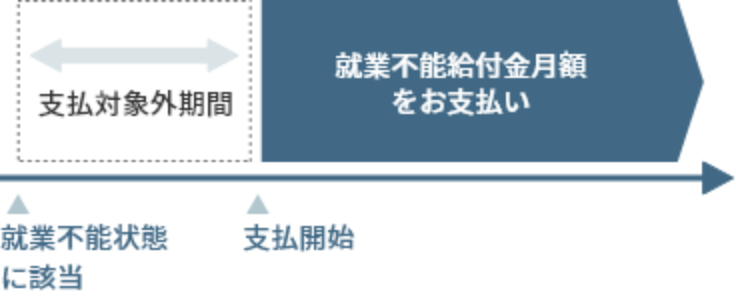 支払対象外期間とは、就業不能状態に該当した後、一定期間、就業不能給付金を支払わない期間です。