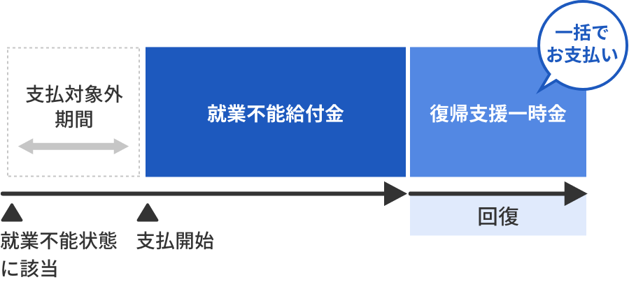 就業不能状態の回復後、生活や収入などが元通りになるまでの経済的不安に備える復帰支援一時金を受け取れます。