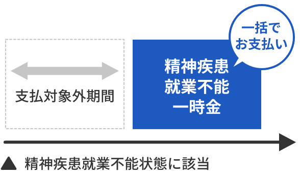 所定の精神疾患就業不能状態が支払対象外期間をこえて継続したときに精神疾患就業不能一時金を受け取れる