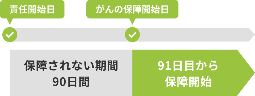 責任開始日から90日より後に、医師または歯科医師の資格を持つ者により、がん責任開始前を含めて生まれてはじめてがんと診断されたときお支払いします。