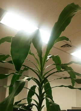 高さも90cm近くになり、大きさ的にすでにデスクの上で育てる大きさではないと分かっているのですが、何度か社内の通路等に置いてみては、デスクに戻ると、幸福の木がいない机の上の殺風景さに、やっぱりもうちょっと机の上で育てようかな・・・と寂しくなってデスクにつれて帰ってきてしまいます。