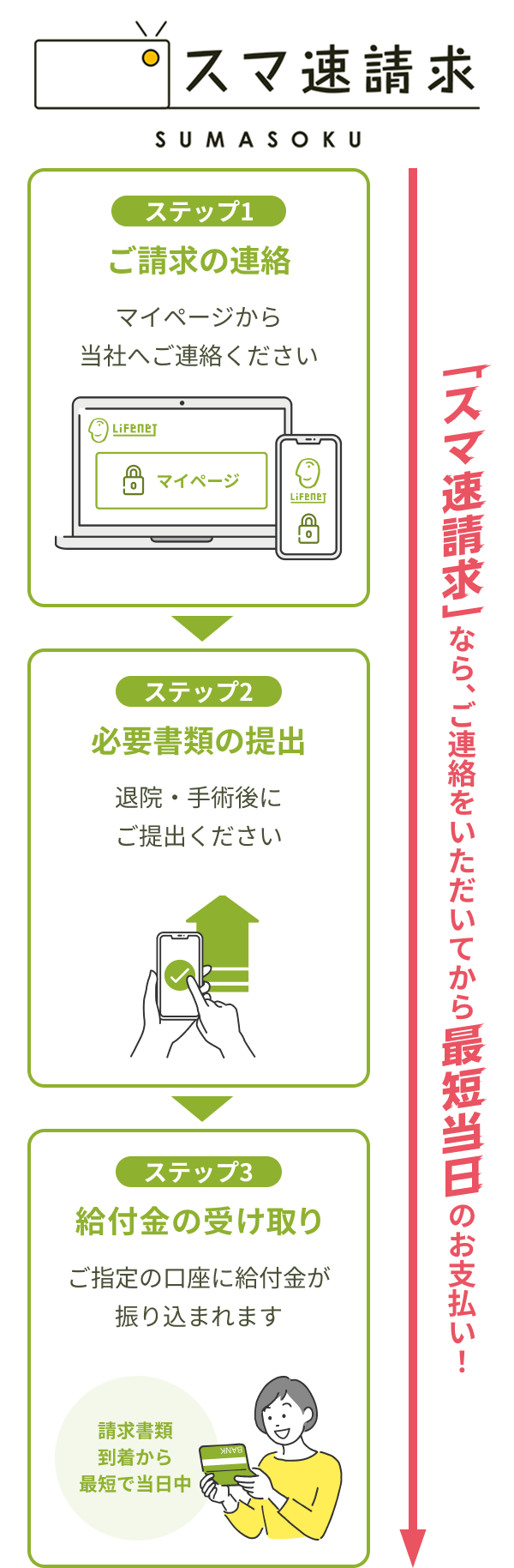 給付金のご請求手続きは、マイページからも24時間受け付けております。